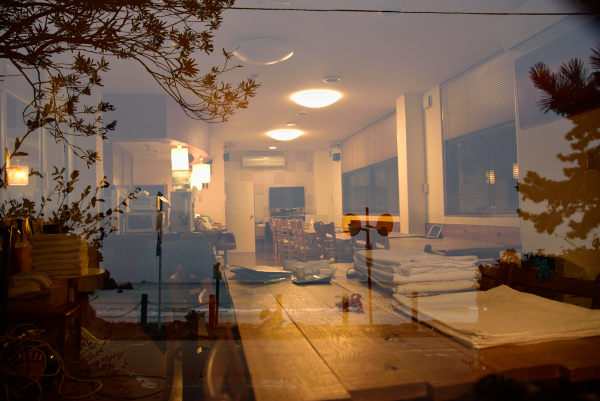 弓ヶ浜海岸と当店の食堂の写真を合成してみた。