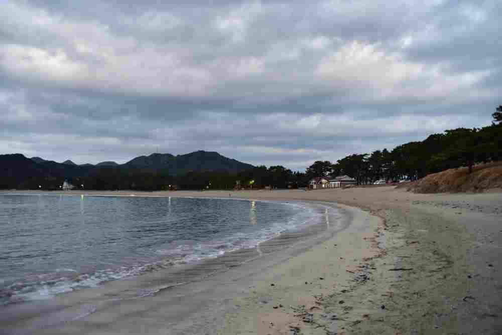 さて今朝の弓ヶ浜beach、7℃寒いっす西の微風だよ、今朝は凪ですが意外と力強く寄せてきています、すっぽり雲に覆われ今朝もサンライズはお預けだな。