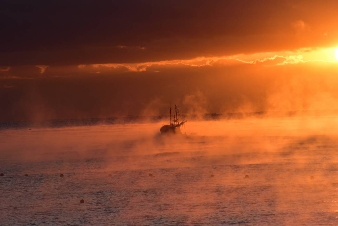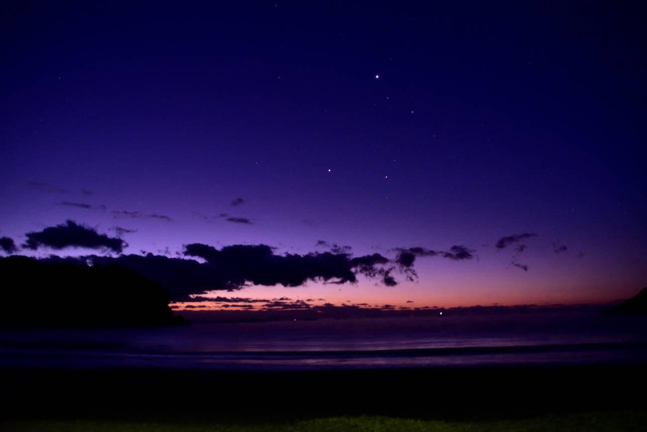 星空とグラデーションショーもすんごく奇麗でしたね、寒いのなんのって6℃でした(南伊豆では極寒ですょ)寒くなければ毛嵐でないしね、湾内は静かですがはるか沖の水平線がギザギザしているのが日の出前の海にくっきりと見えています、西の風が強くなり12度までしか上がらない予報ですよ。今日から新環境での投稿ですまだ使い勝手を覚えていない・・・。
