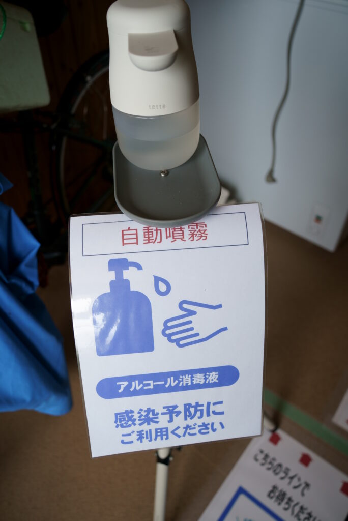 玄関に於いて入場前に予防対策の徹底をお願いをしています。