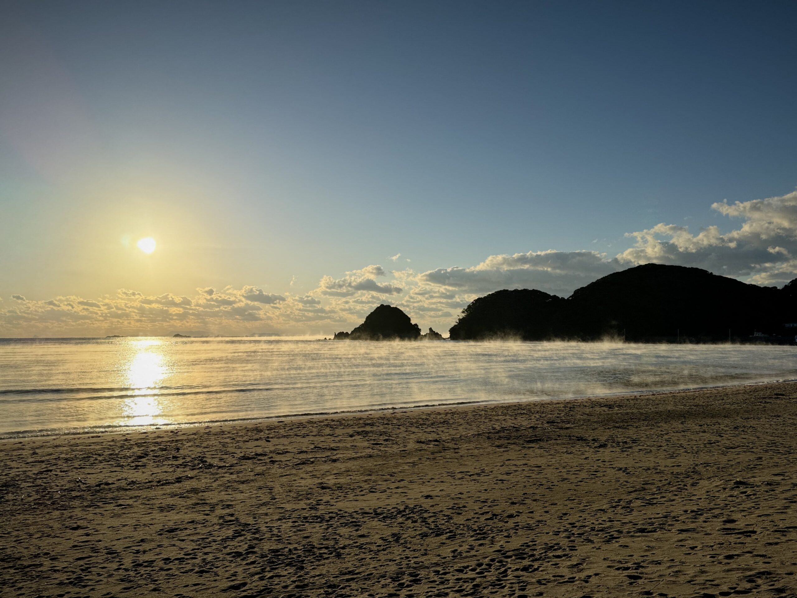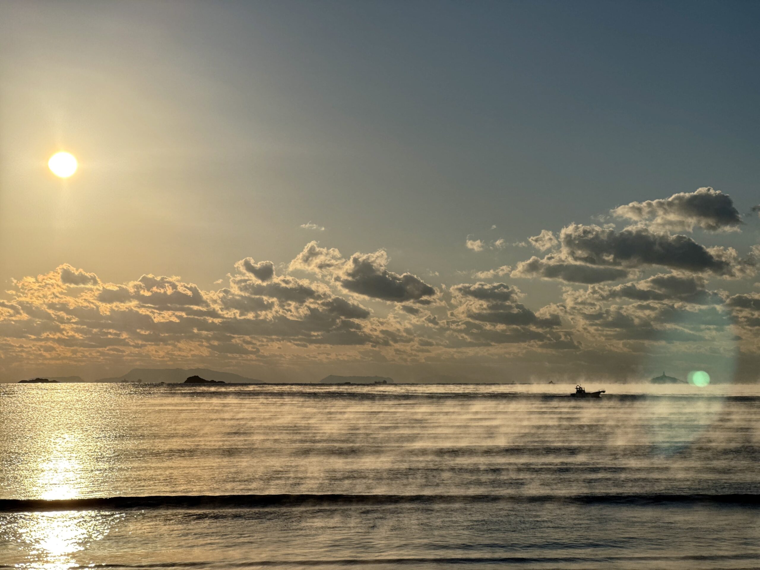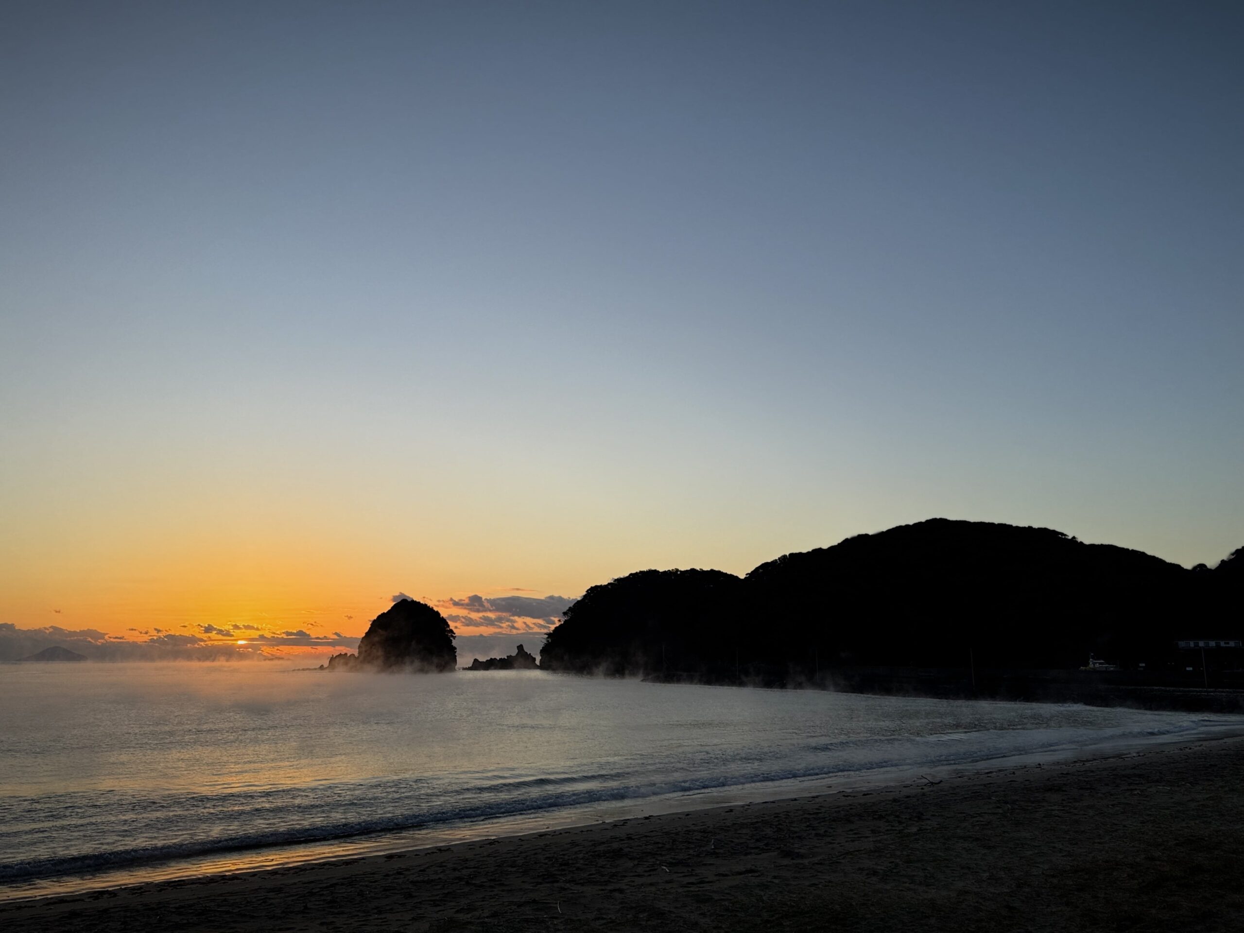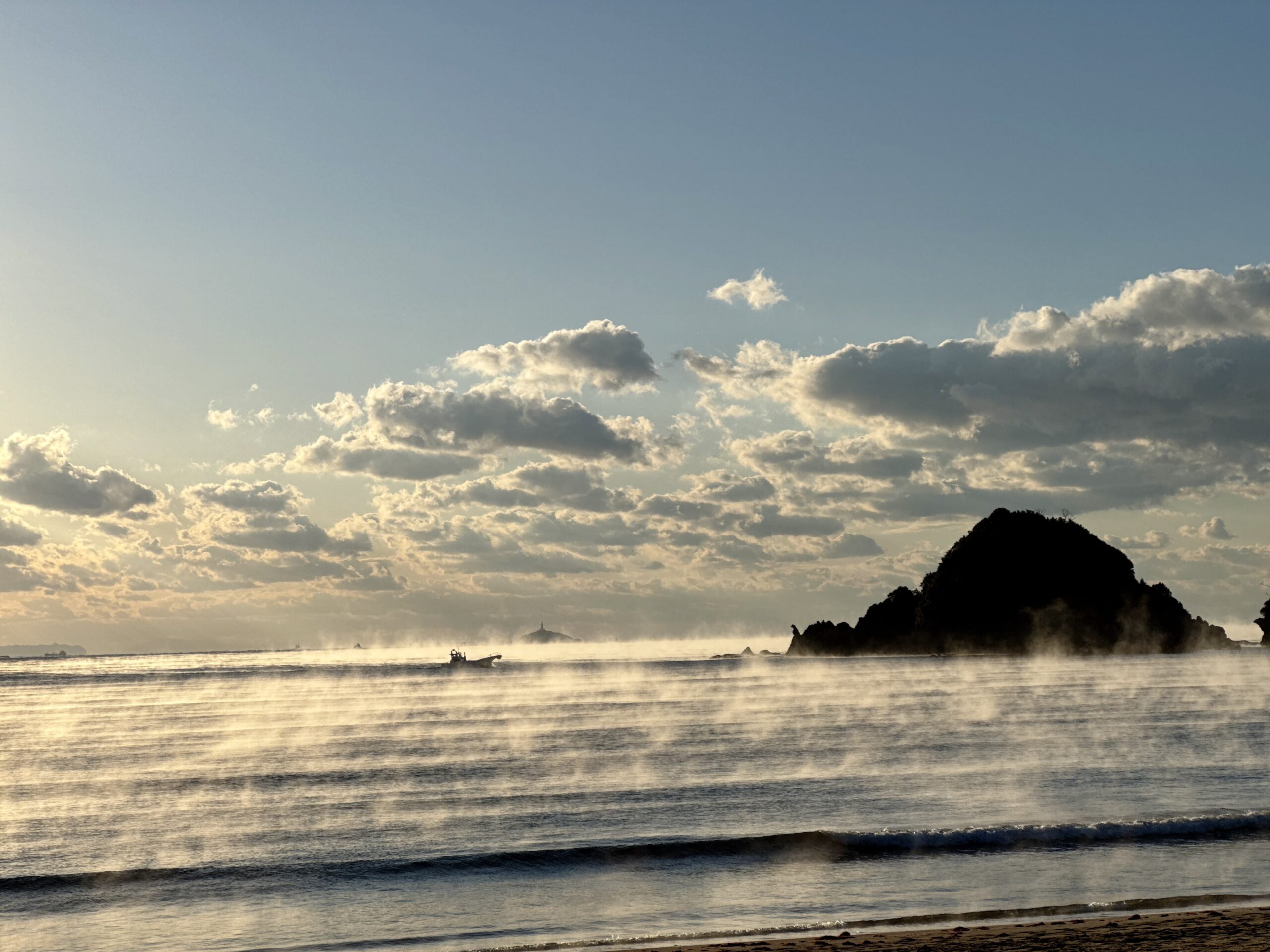 素敵な朝を迎えましたよ、beachが気嵐で覆われていました、気嵐が見える頃になると冬本番が来たぞってなります、例年より暖かく過ごしてきた今年ですがやはり季節は巡ってきますね、今年は特に海水温が暖かということで弓ヶ浜沖でもマグロ・鰹が例年になく上がっていますよ、海水温が暖かですと空気が冷えれば気嵐も出やすくなるのかな?どうぞあなたも素敵な景色を堪能しにお越しくださいませ。(絶対見えるお約束は出来ませぬ)。