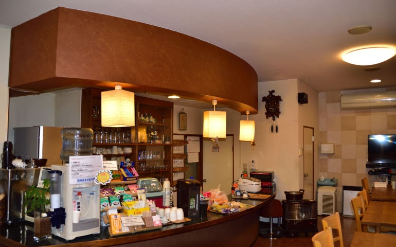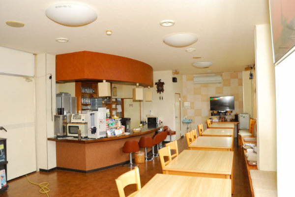 - 食堂内カウンター上のミネラルウォーター・ドリップ珈琲・紅茶・緑茶・スナック菓子など滞在中無料でご提供